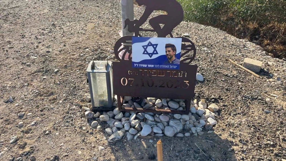 A memorial for Tomer Shpirer, murdered by Hamas on Oct. 7, 2023 near Tzomet Mefalsim, Oct. 5, 2024. Photo: Amelie Botbol.