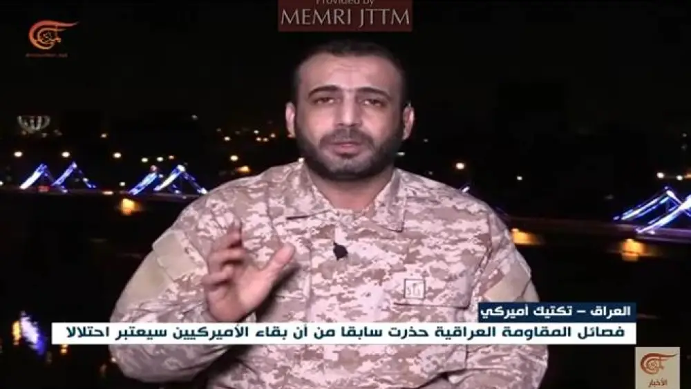 According to a new MEMRI Jihad and Terrorism Threat Monitor (JTTM) report, Ja’afar Al-Husseini, the military spokesman for Kata’ib Hezbollah Iraq, a militia supported by the Iranian Islamic Revolutionary Guards Corps (IRGC) and which is on the U.S. list of designated terrorist groups, issued threats that the terror organization would expel American forces stationed in Iraq, during a television interview.