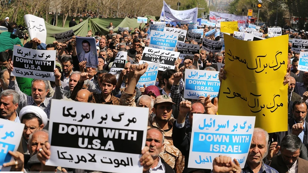 Thousands of Iranians also took to the streets in protest of America’s decision, holding pre-printed placards opposing in America in Farsi, English and Arabic. While the posters read in English, “Down with U.S.A” and “Down with Israel,” the translations of the Farsi and Arabic read, “Death to America” and “Death to Israel.”