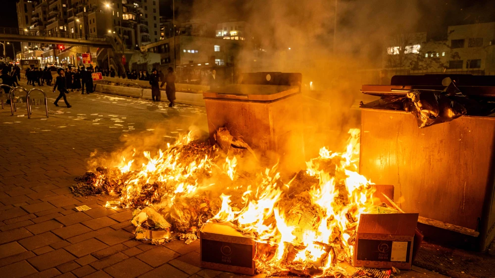 The Israel Police said that a small group of rioters disturbed the public order, including by blocking roads, damaging buses, setting trash bins on fire and attacking officers and journalists at the demonstration.