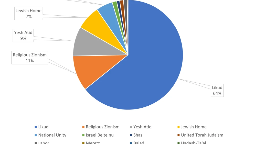 All other Zionist parties received less than 10 votes: Israel Beiteinu received six votes, United Torah Judaism and Labor each got five votes, Shas received four and Meretz one vote.