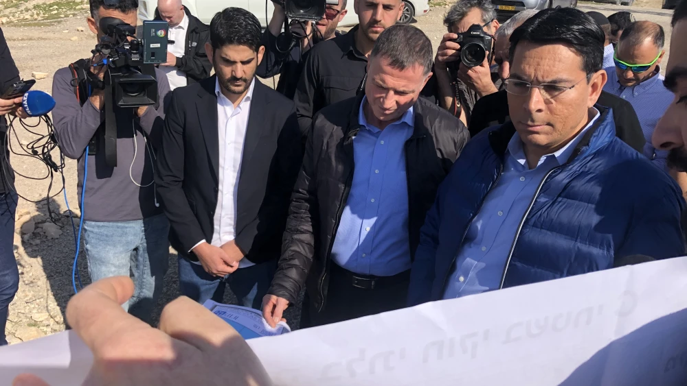 A statement issued by the organization in conjunction with Monday’s visit said, “A group of Likud MKs came out to see Khan al-Ahmar, to understand why it is the flagship of the P.A.'s annexation project, and to learn about the ridiculous and dangerous ‘alternative’ cooked up by [former Defense Minister] Benny Gantz—a far worse alternative than the present situation.”