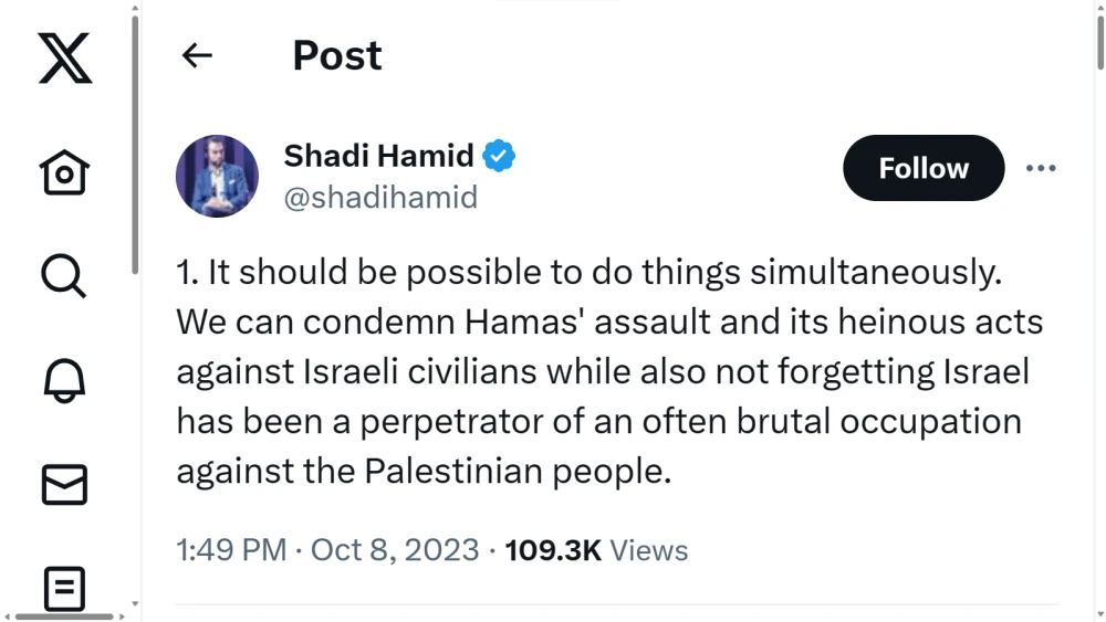 Khaled Elgindy, an adjunct professor at Georgetown’s Center for Contemporary Arab Studies, at least brought himself to show some sympathy for Israelis.