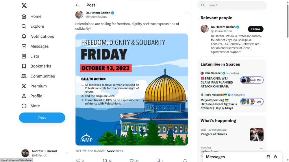 He tweeted: “Palestinians are calling for freedom, dignity and true expression of solidarity!” Befitting his vicious and longstanding antisemitism, his tweet included an advertisement for a forthcoming rally organized by his vile creation, the Hamas-aligned American Muslims for Palestine.