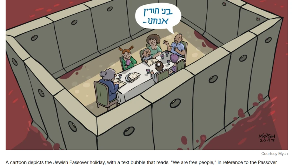 For example, another cartoon explicitly used the antisemitic Passover blood libel, depicting Palestinians being crushed to death between two pieces of matzah as blood pours out.