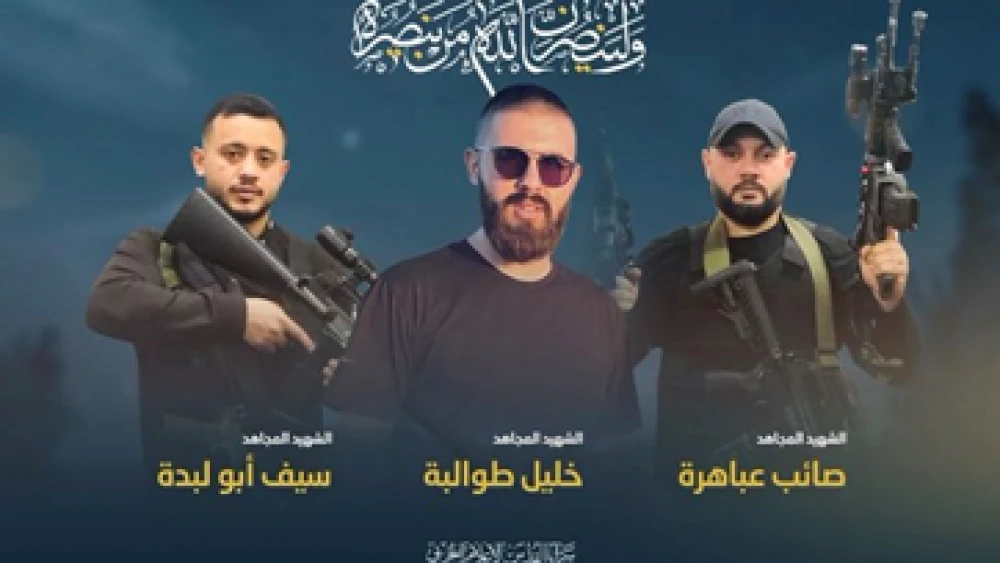 Portraits of the three Palestinian Islamic Jihad terrorists intercepted by Israeli forces on April 2 en route to an attack appeared on Twitter, and a tribute also appeared in the Iranian press. The photo above appeared in a tweet under the title, “It is destined for my people to bleed for the nation to live.”