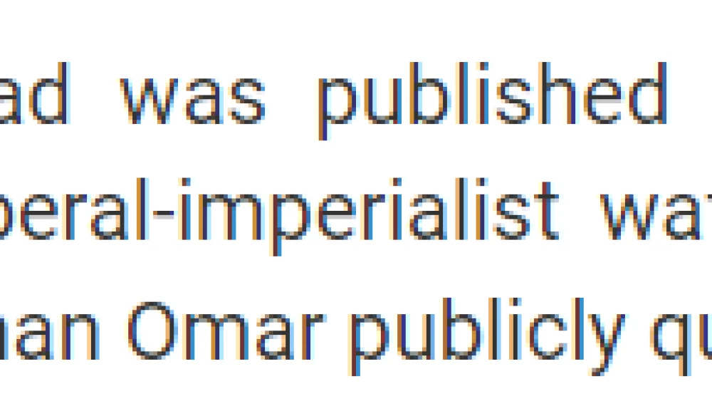 The Iranian mouthpiece Press TV effusively praised the Responsible Statecraft article, citing “Senator” Ilhan Omar in order to do so: