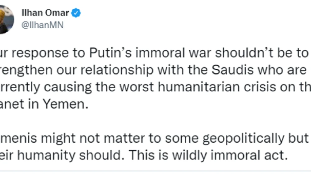 Omar’s hatred of Israel is only the tip of the various foreign alliances the former Somalian has fostered. She has met with the leaders of Pakistan—including an ousted prime minister—and Turkey’s President Recep Tayyip Erdoğan. She rails against U.S. ties with India because of the country’s alleged human rights violations against Muslims, but has barely said a word about the ongoing citizens’ revolt in Iran or the Iranian regime’s brutal attempts to suppress it. Omar also voted against the U.S. ban on Russian oil and funding for Iron Dome.