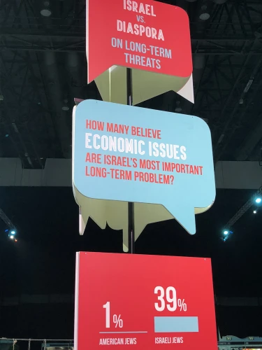 Throughout the Tel Aviv Convention Center, infographics revealed sharp differences in attitudes between American Jews and Israelis on key issues.