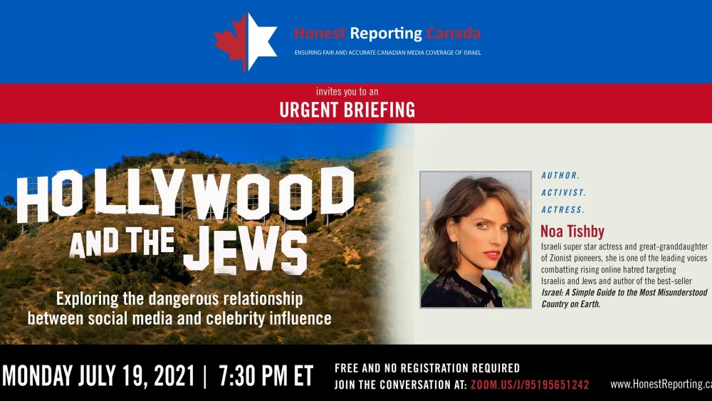 On Monday, July 19 at 7:30pm eastern time, join HonestReporting Canada for an Insider Briefing, “Hollywood and the Jews,” where participants will explore the dangerous relationship between social media and celebrity influence.